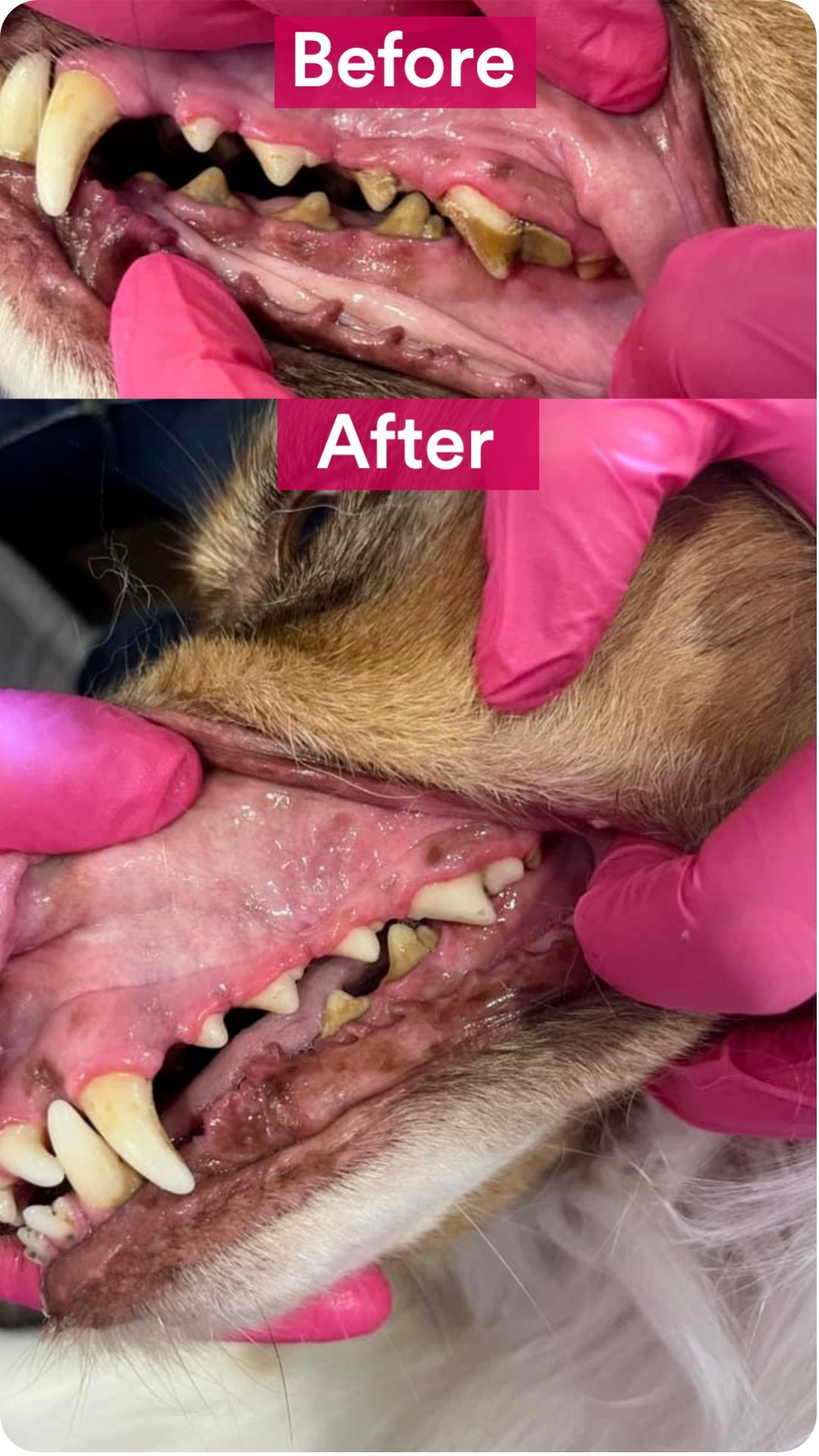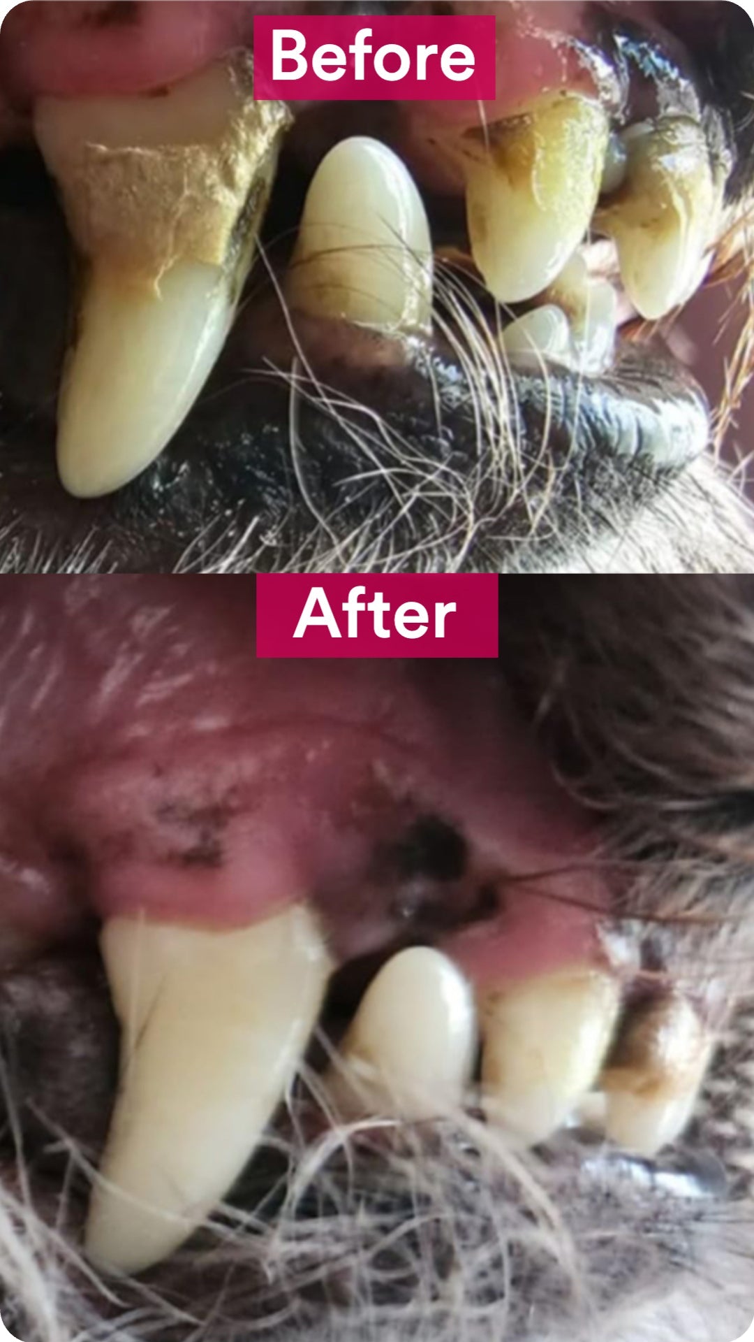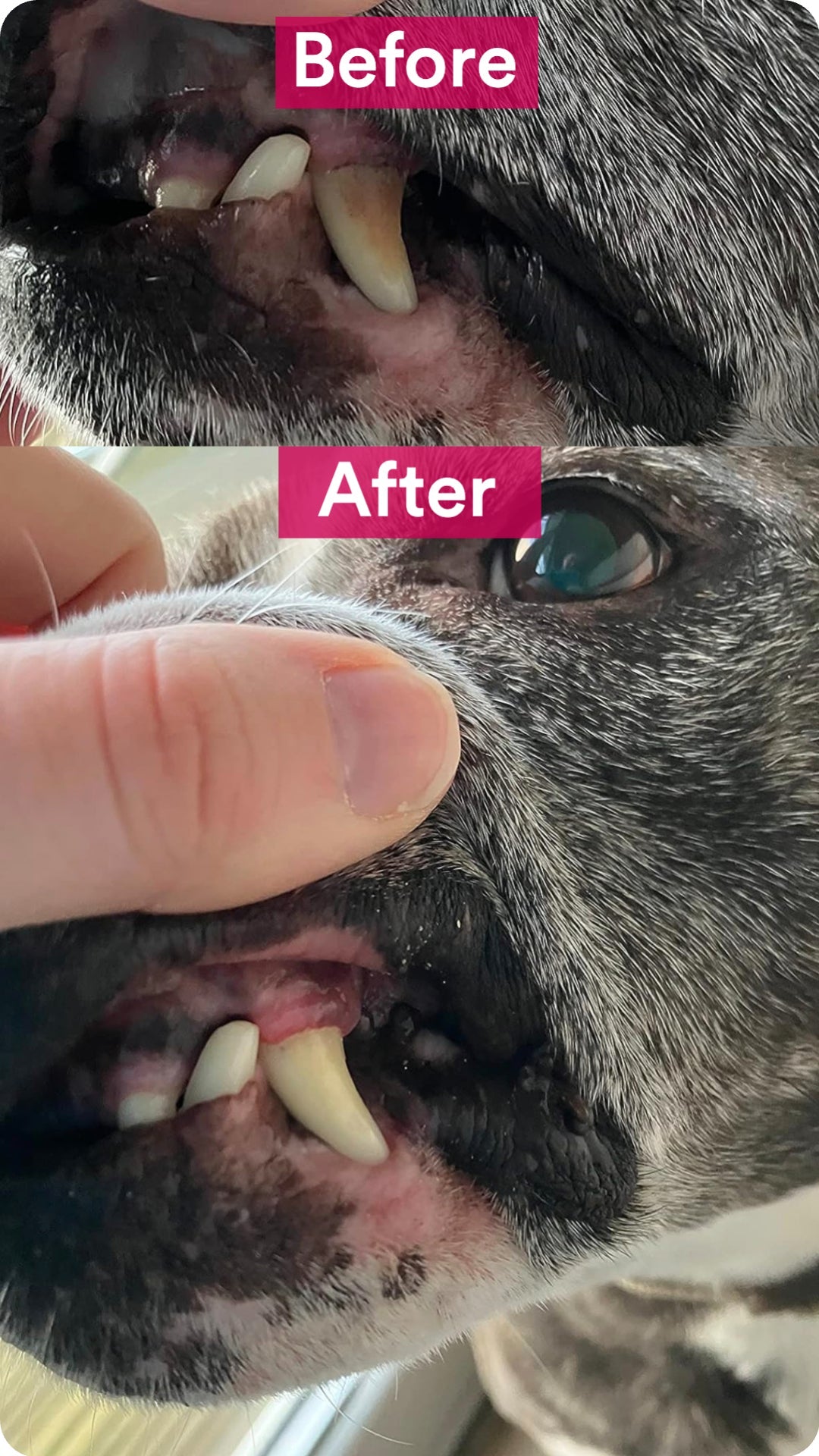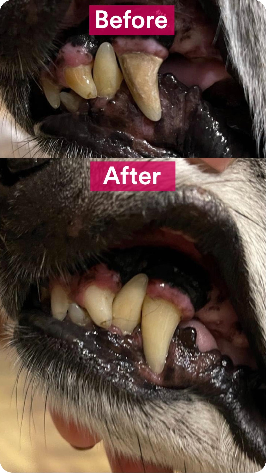 Promote healthier gums and cleaner teeth at home, reducing the risk of dental diseases such as inflammation, dental abscesses and tooth loosening - all without stress and at your dog's pace.