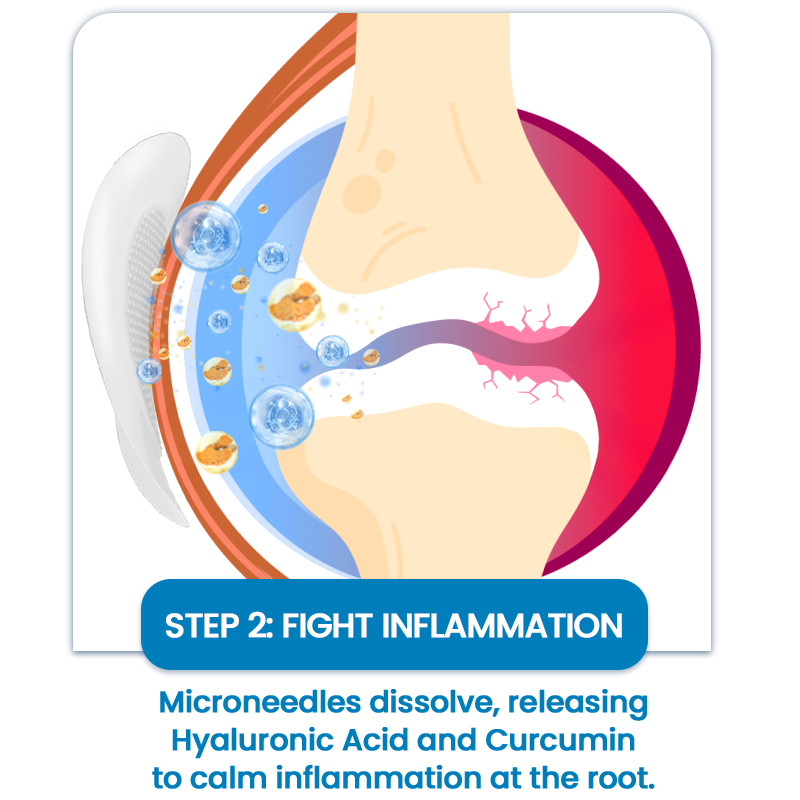 Each microneedle is 0.27mm long—thinner than a hair—and made of dissolvable Hyaluronic Acid. These precision-engineered microneedles gently pierce the outer skin layer, delivering joint-soothing ingredients directly where you need them—no shots, no pain, just relief!