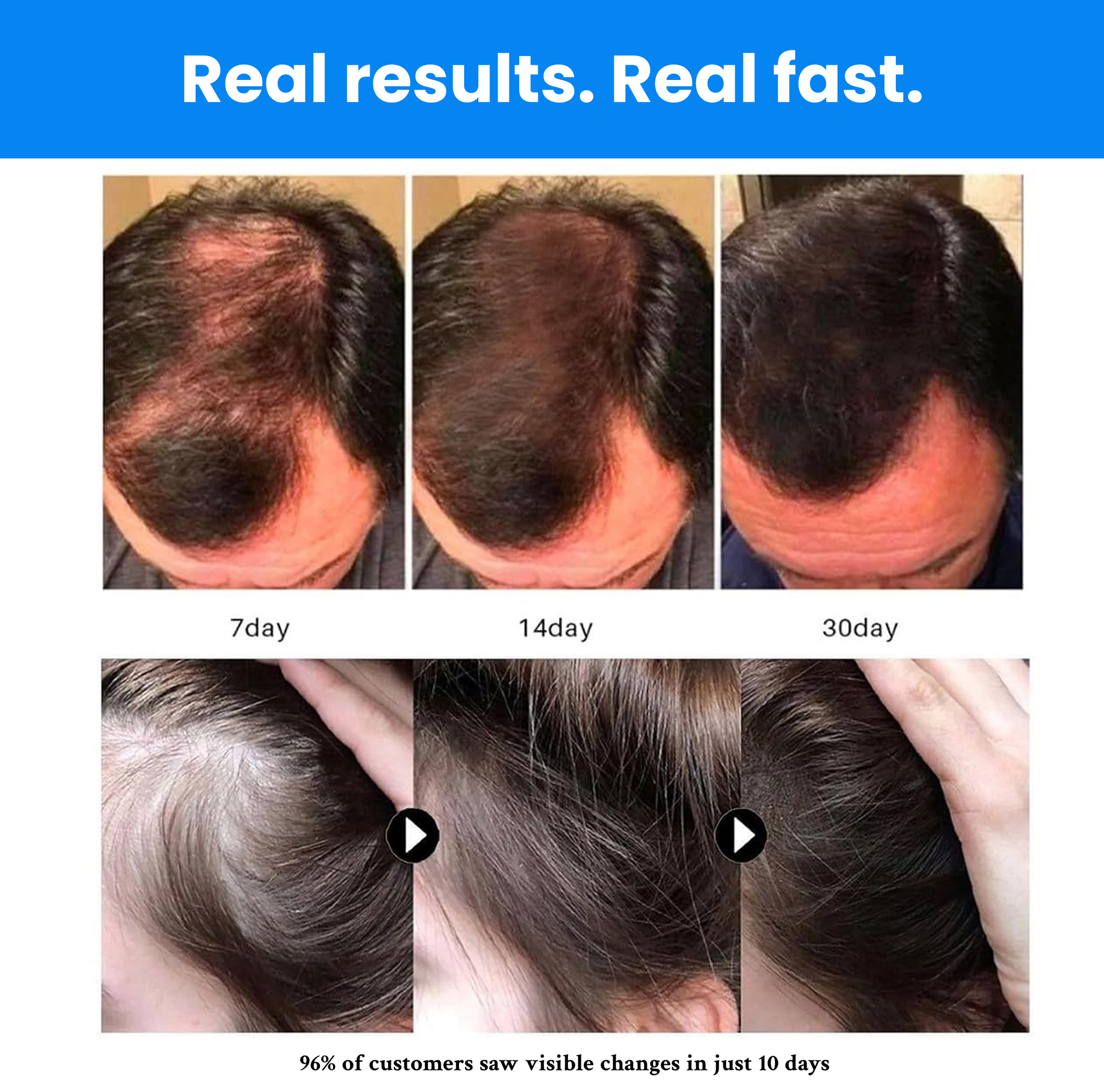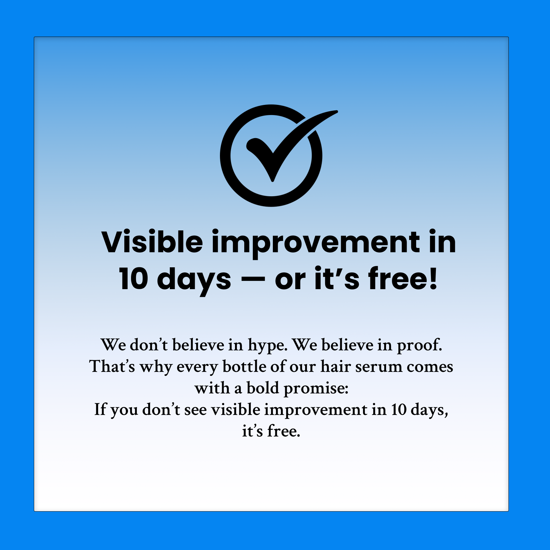 Most users notice less shedding and a healthier-feeling scalp in just 10 days. Full visible improvement may take a few weeks, depending on your hair cycle.
