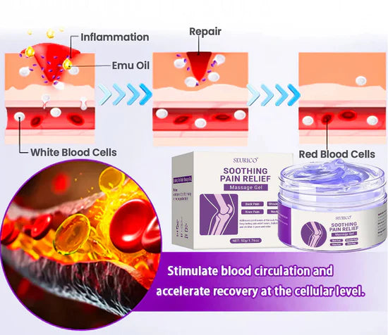 Seurico™ Gel contains turmeric (curcumin) and emu oil, both known for their powerful anti-inflammatory and pain-relieving properties. These ingredients work together to reduce joint inflammation, soothe stiffness, and promote long-term joint health by deeply penetrating the skin and targeting the root cause of the pain.