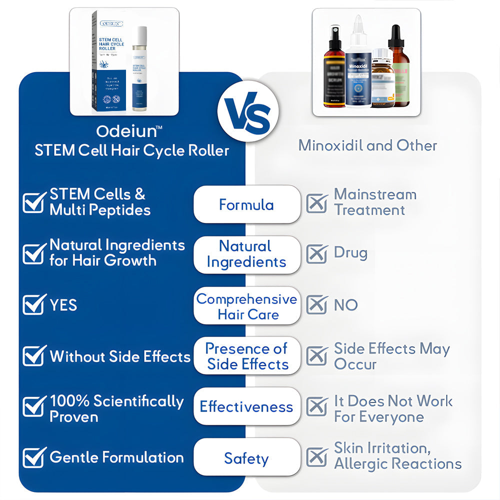 ODEIUN™ Advanced Stem Cell Hair Revival Roller provides a non-invasive, easy-to-use solution, making it the ideal choice for anyone looking to restore hair vitality and combat hair thinning or loss. Additionally, its gentle formula ensures it’s suitable for sensitive scalps, while its cost-effective pricing makes it accessible for everyone seeking a long-term solution to hair restoration.