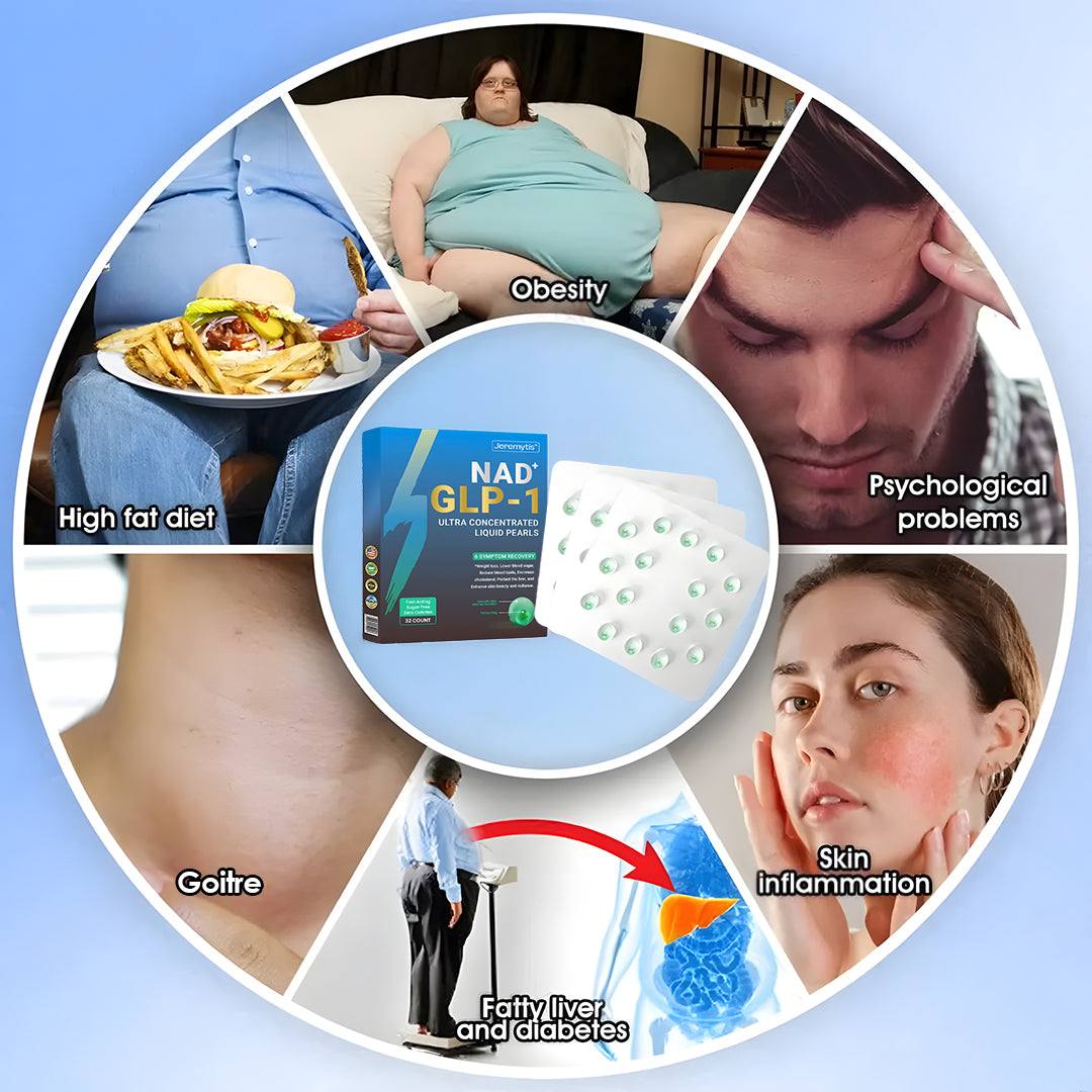 "I suffer from both obesity and diabetes, and I've been getting GLP-1 treatment at the hospital. You might be wondering why I suddenly switched to using the Jeremytis™ GLP-1 Slimming & Health Ultra Concentrated Essence Liquid Pearls. GLP-1, a naturally occurring hormone that helps regulate blood sugar, is definitely a great treatment. It works really fast—just a short time after injection, my appetite dropped, I lost weight quickly, and my blood sugar went down. But, as we all know, it's tough to break old habits. On my scheduled injection days, I'd come up with all sorts of excuses to skip, which led to failed treatments. The cost, hunger, time conflicts, or even something as simple as it raining outside would keep me from going. But the GLP-1 and NAD+ Ultra Concentrated Essence Liquid Pearls are perfect for someone like me who struggles with inertia. I can use it easily at home, and the effects last, keeping my appetite in check. What's even better is that it's really affordable, and anyone can use GLP-1 to help lose weight and keep their blood sugar in check!